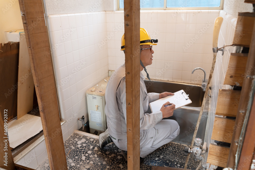 専門スタッフが現地を訪問し、設備の状態や工事の必要範囲を確認。写真やチェックシートで客観的に状況を把握します。